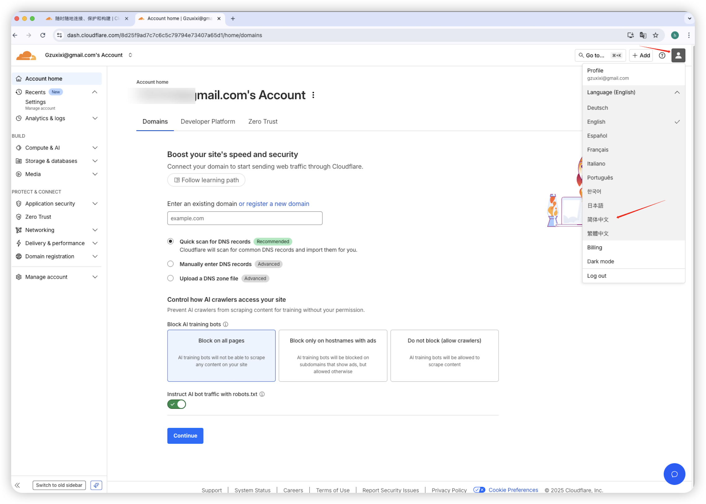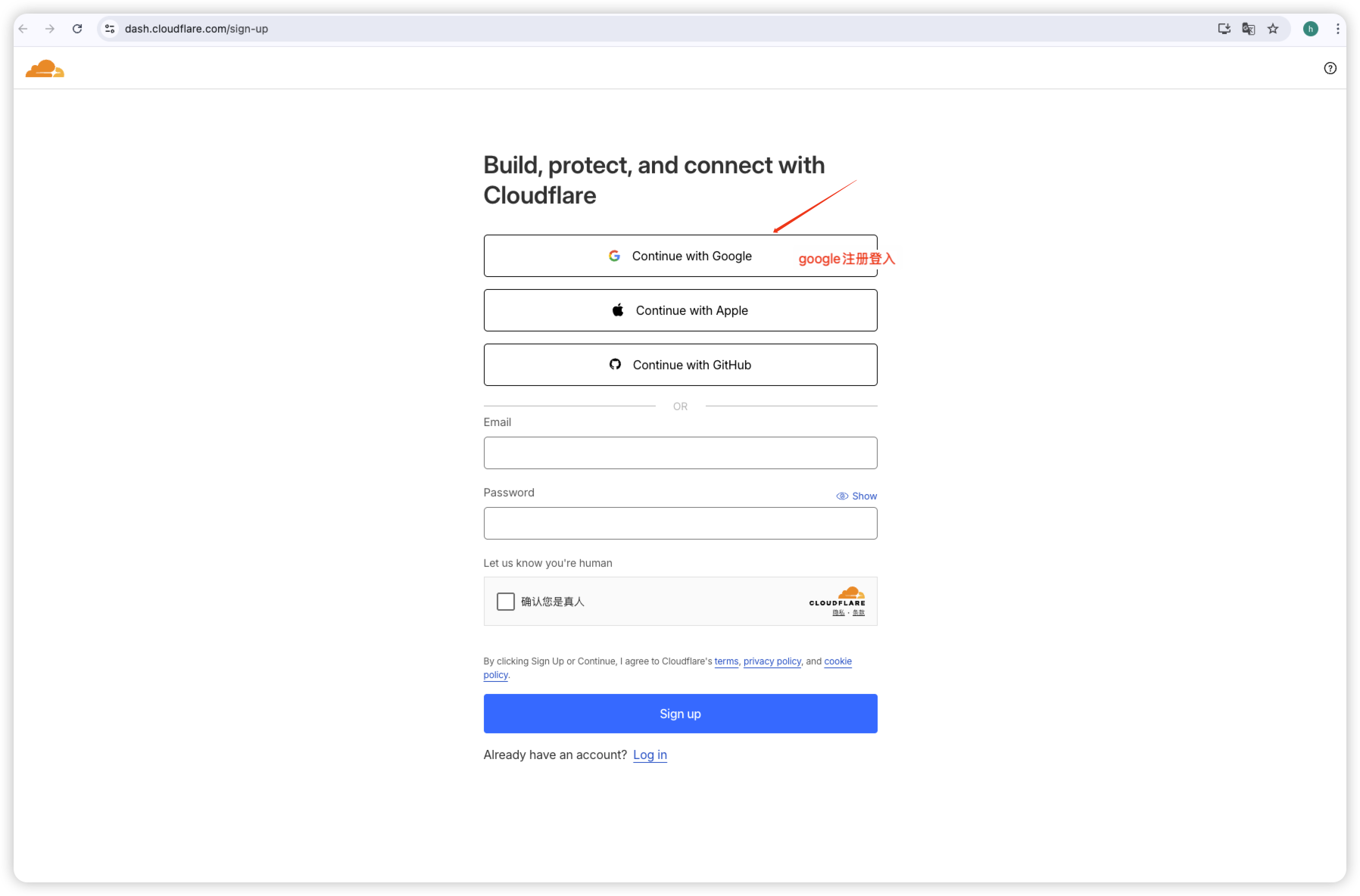 - 注册并登入Cloudflare账户:https://www.cloudflare.com/zh-cn/
