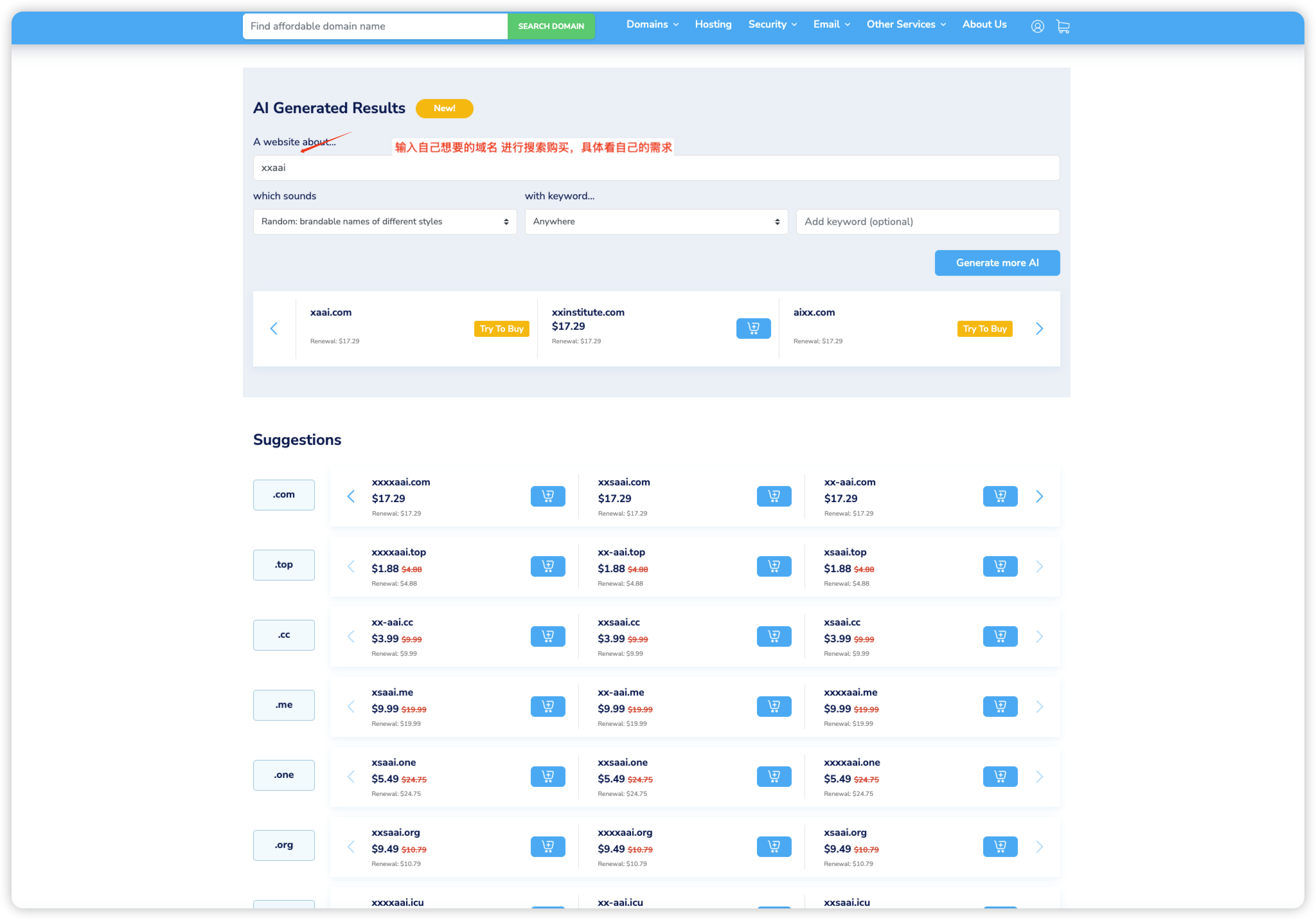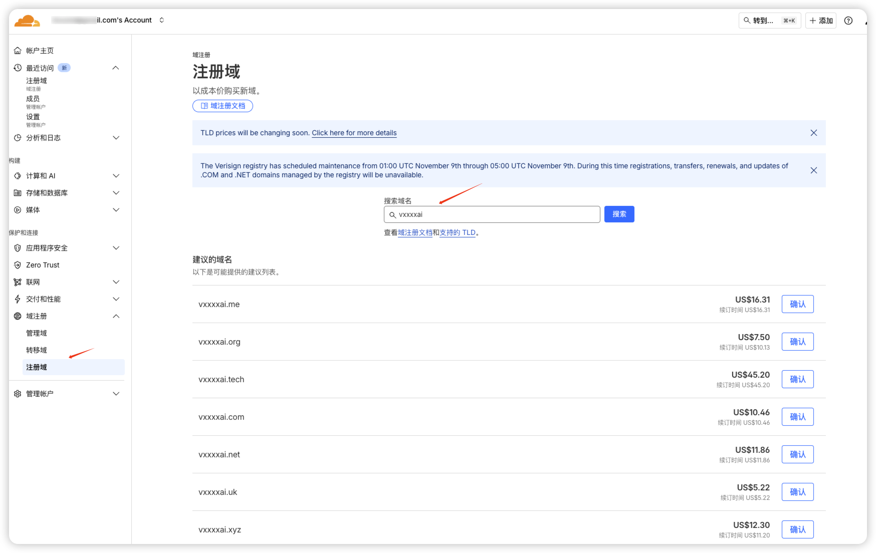 - 搜索域名并根据自己的需求进行购买