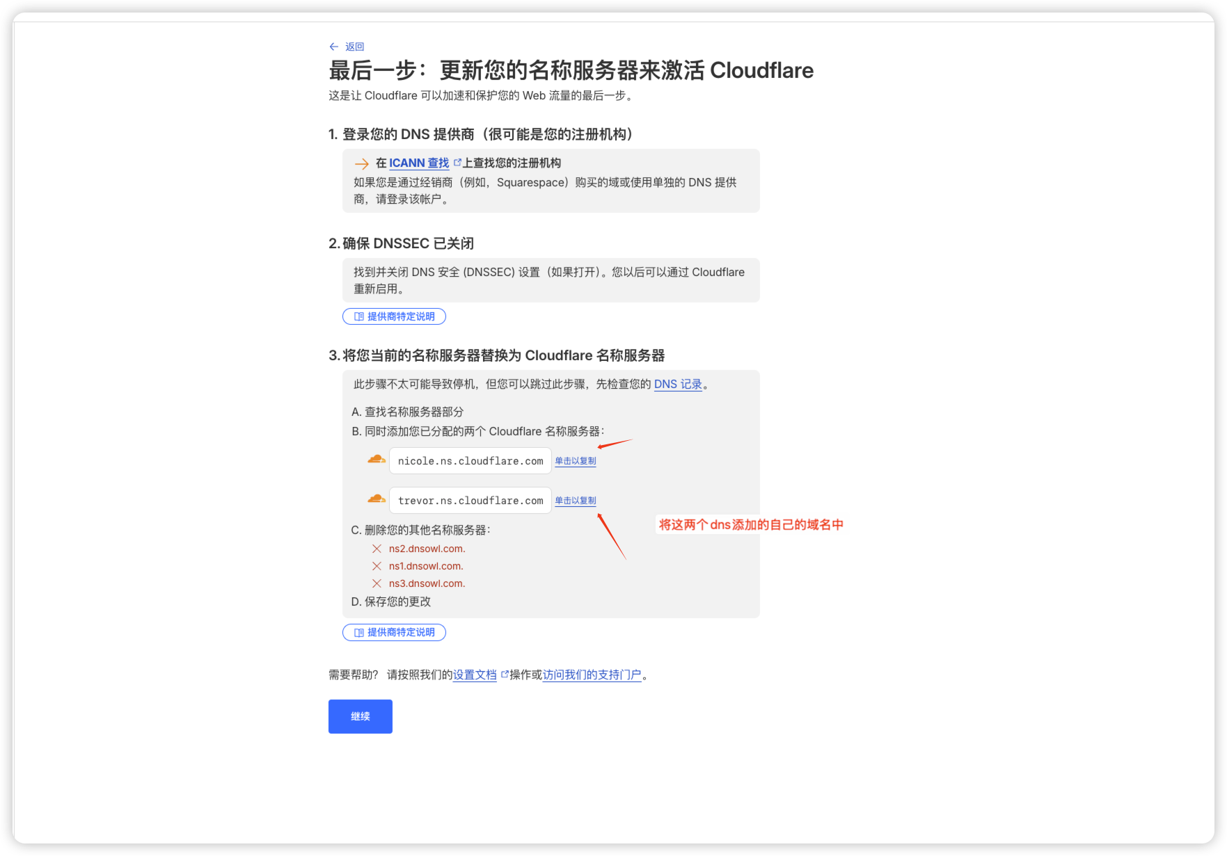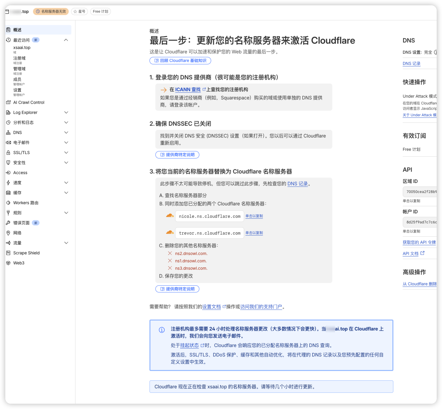 - 最后cloudflare里的域名并等待激活即可完成解析