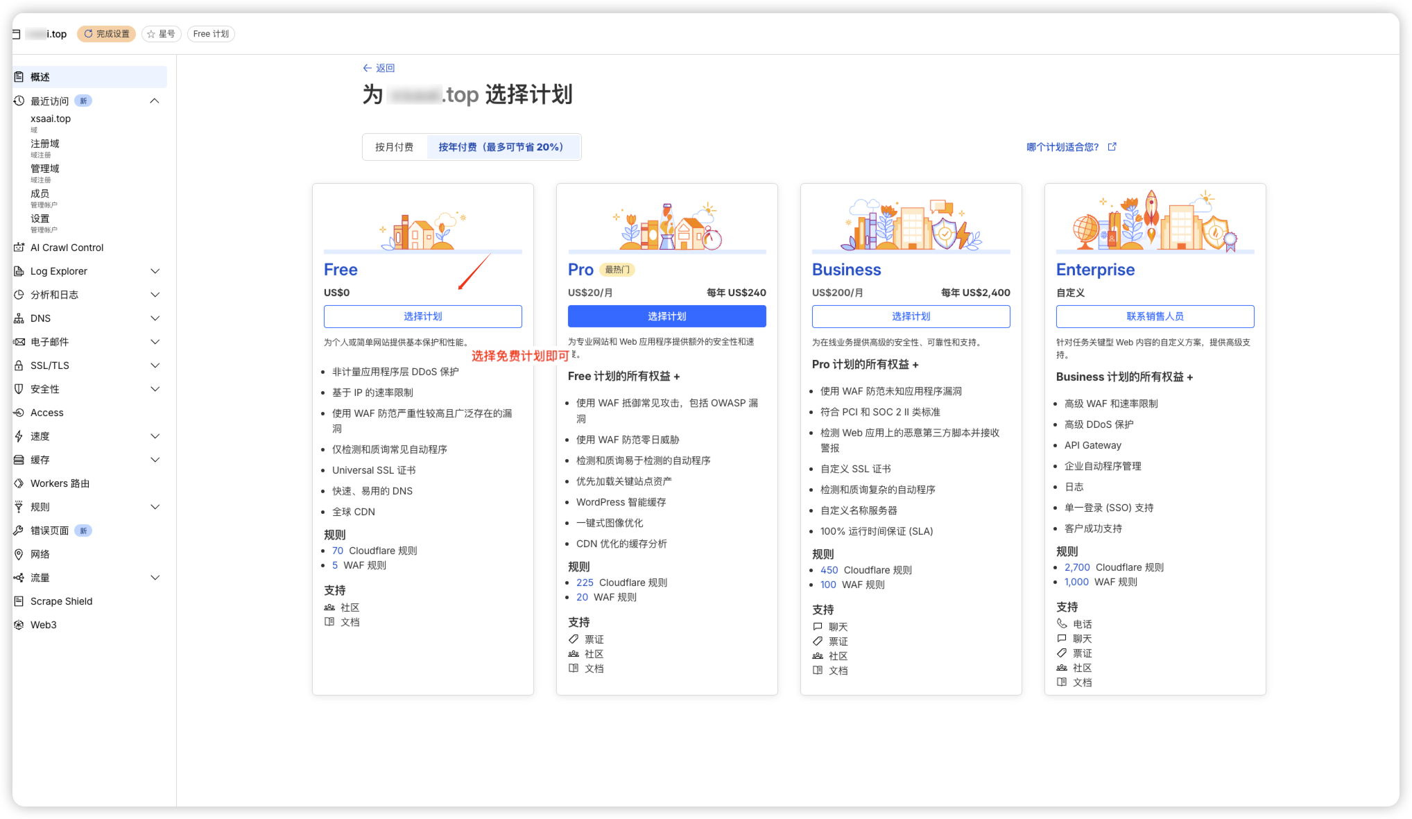- 选择免费计划即可,并前往激活