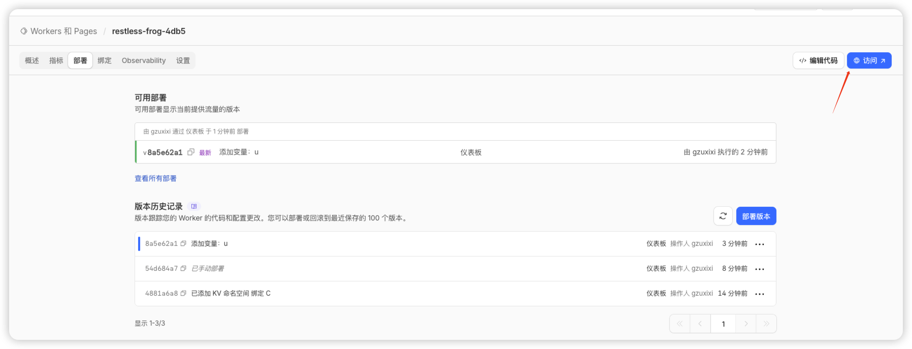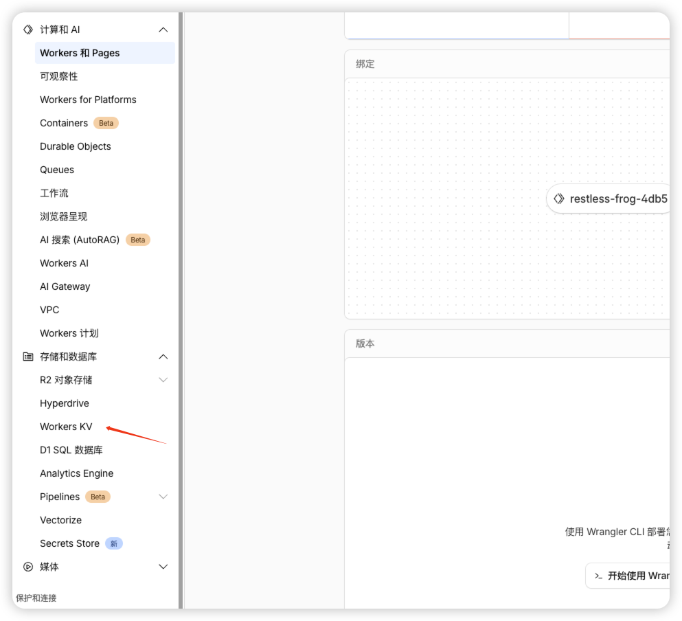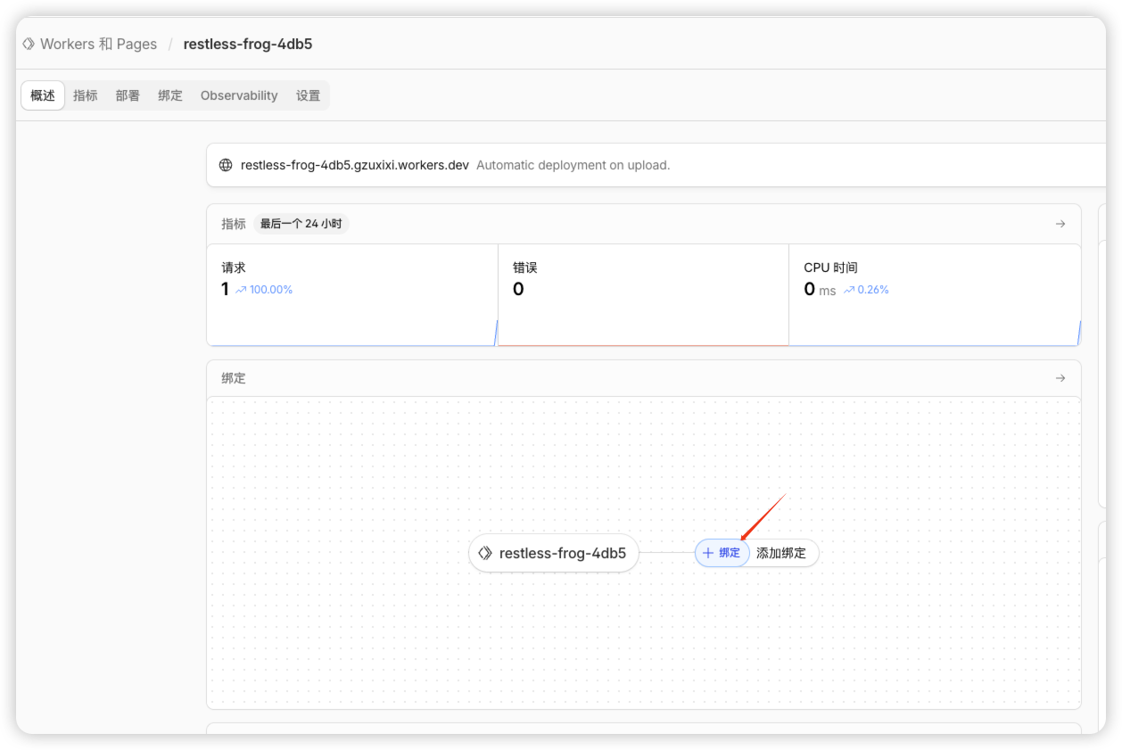回到刚才创建的 worker。点击绑定,如下图
