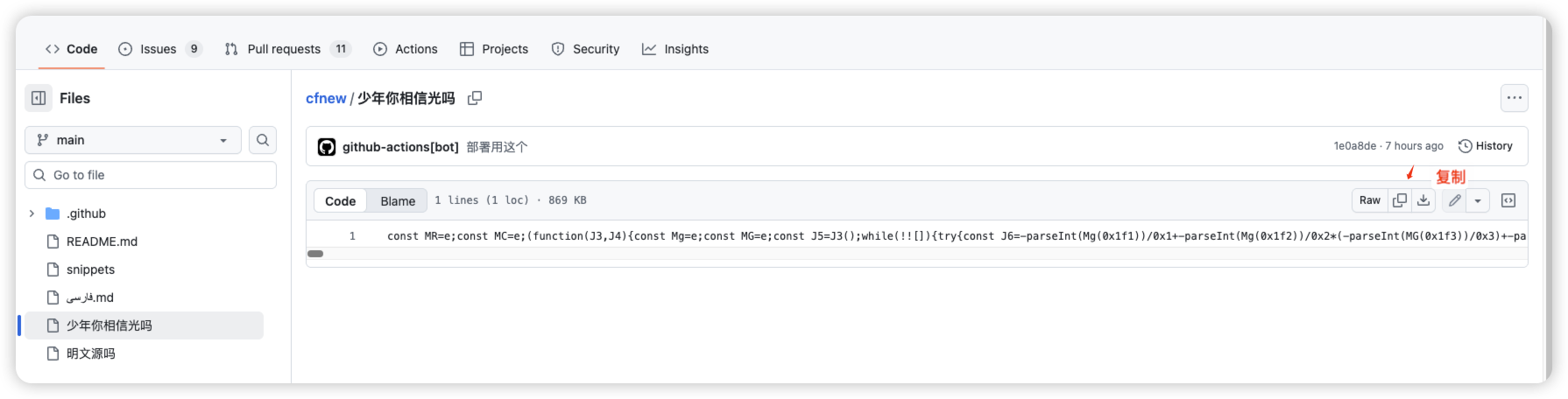- 选择仓库里面的少年你相信光吗然后点击复制