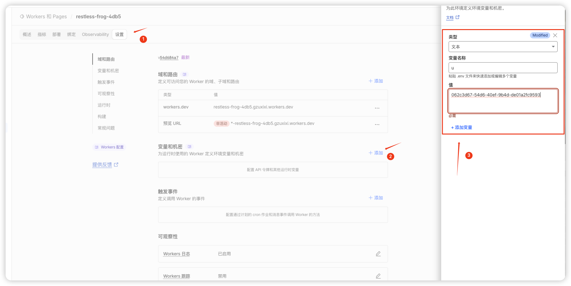 - 回到创建的 worker 添加变量