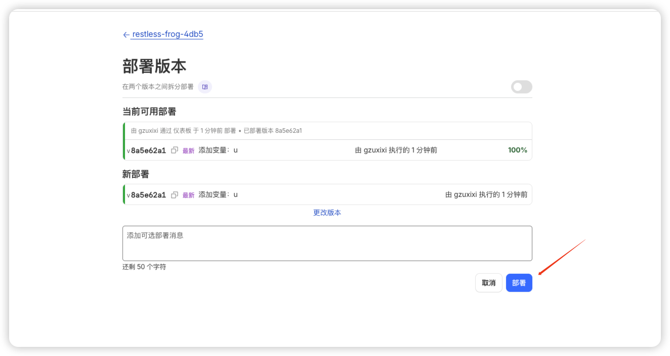 - 然后点击部署