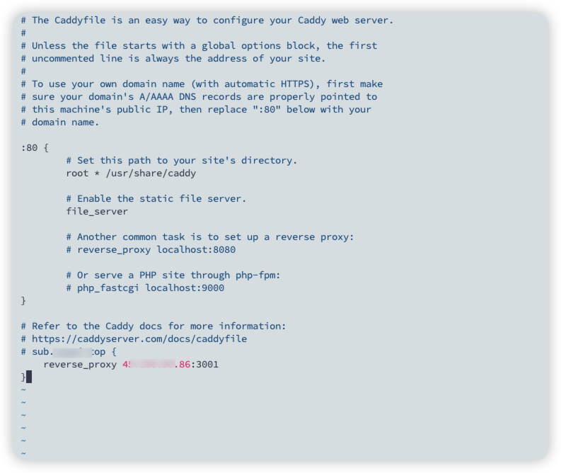 vim /etc/caddy/Caddyfile