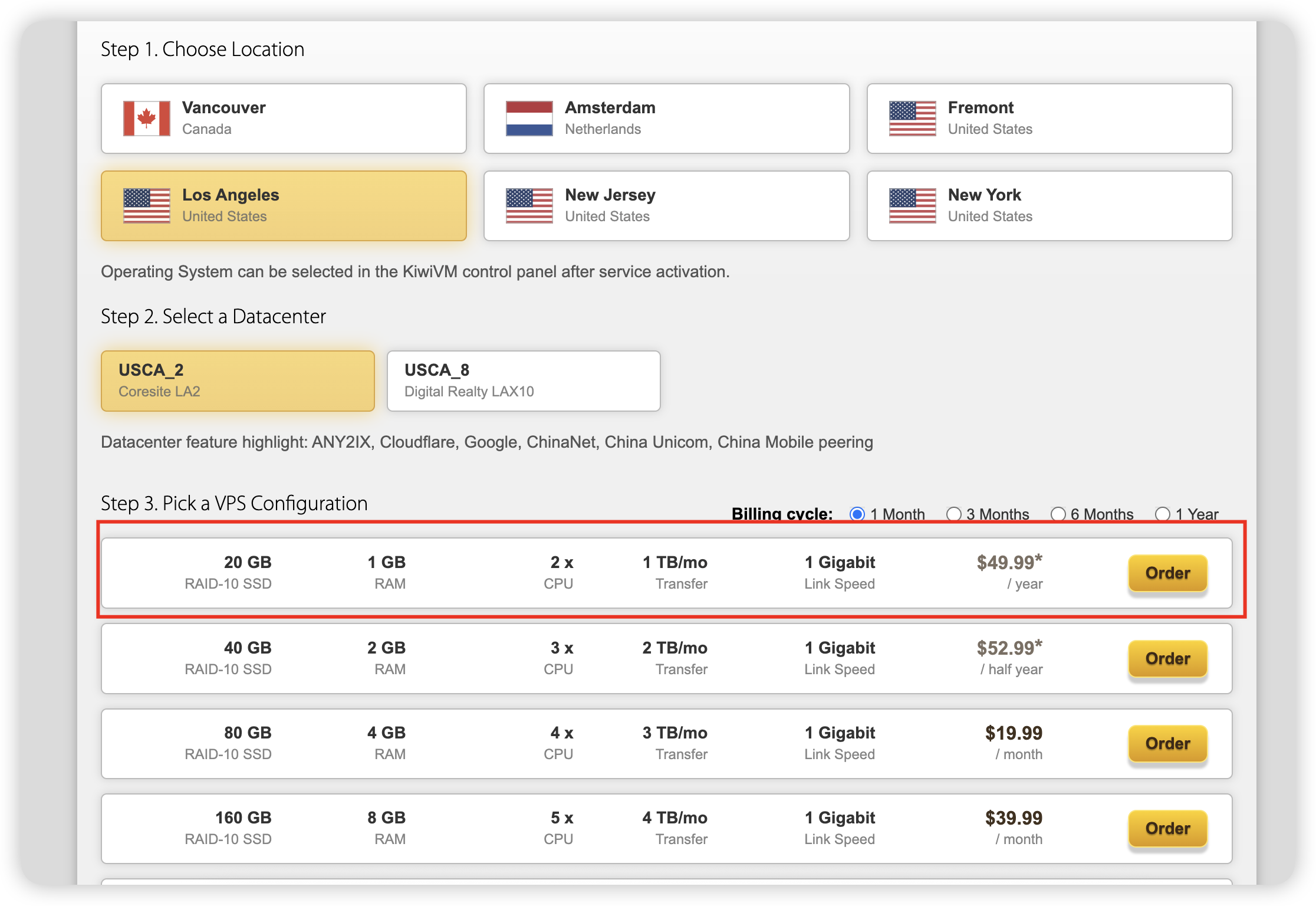 49.99刀/年,每月大概30元左右,1TB流量(双向计费),三网各自优化