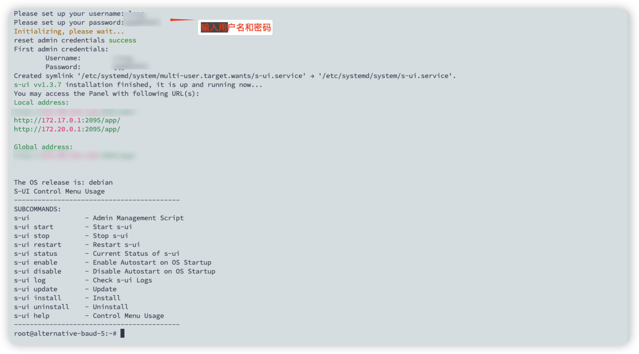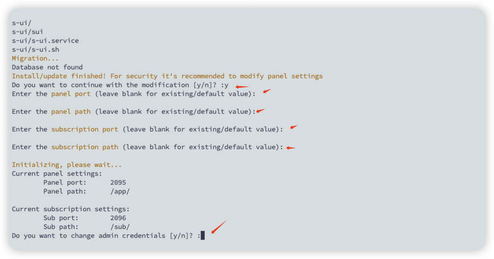 bash <(curl -Ls https://raw.githubusercontent.com/alireza0/s-ui/master/install.sh) - 根据命令行提示操作,按N默认设置,完成 SUI 面板安装;