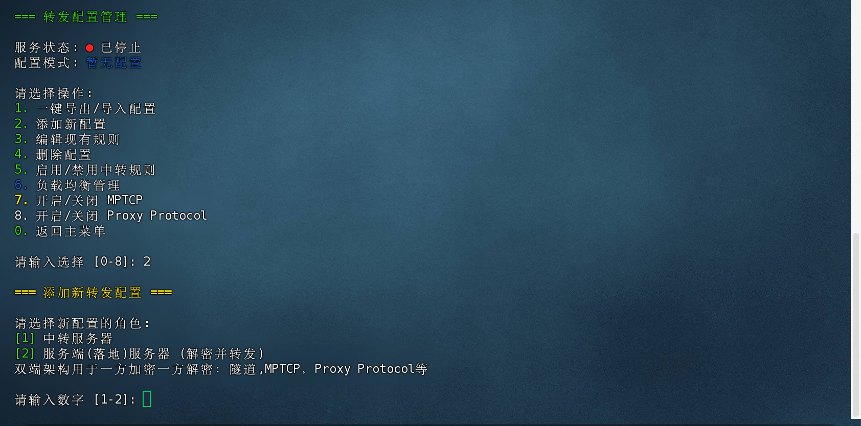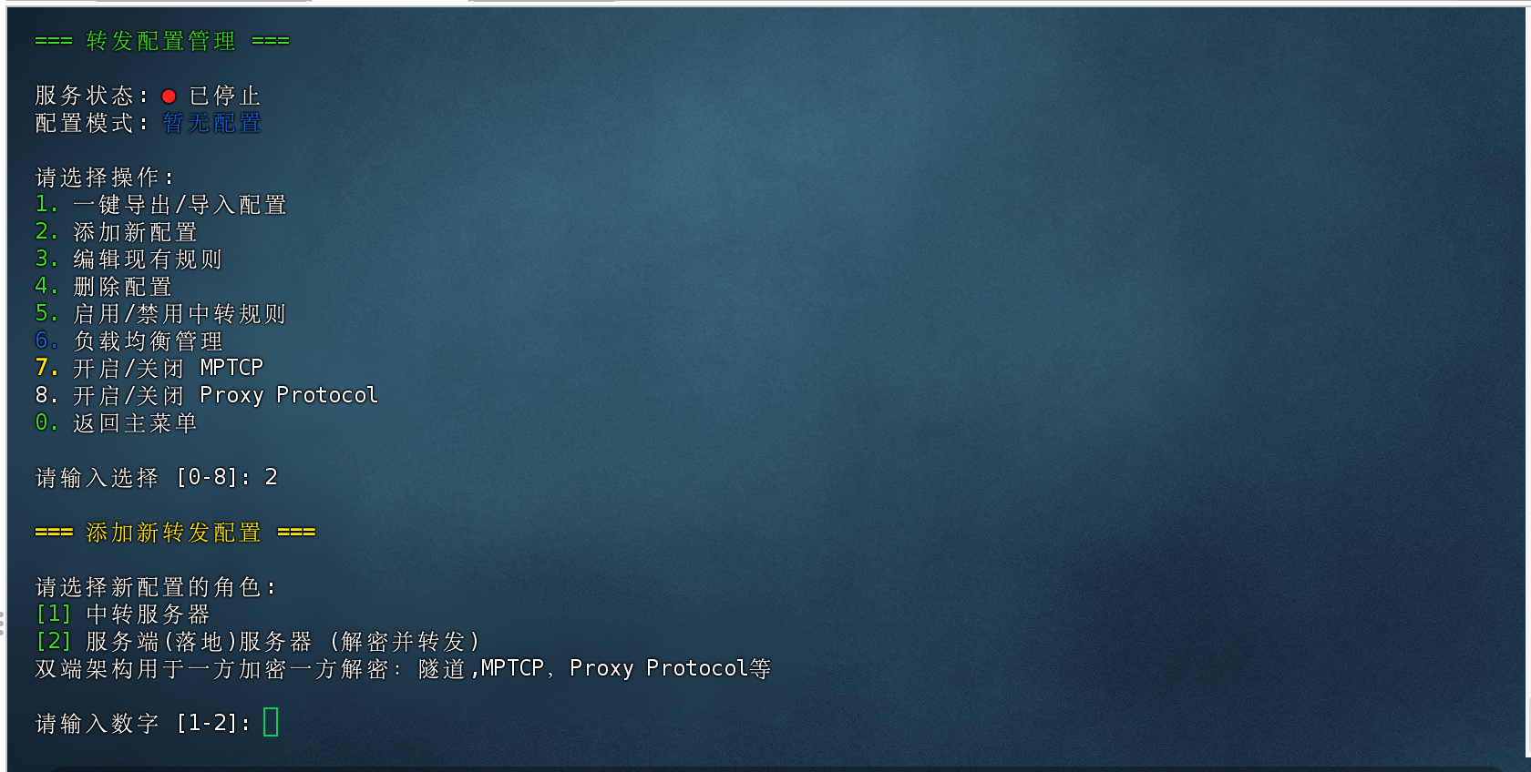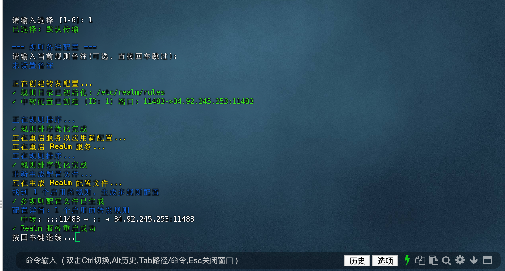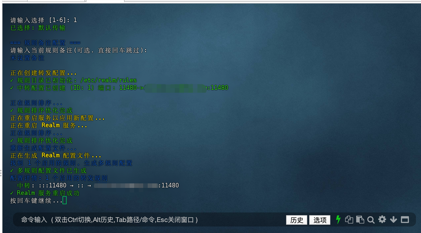 接着上面的输入1,输入端口:11480,按回车输入IX专线的ip或者域名:5.6.7.8(举例)