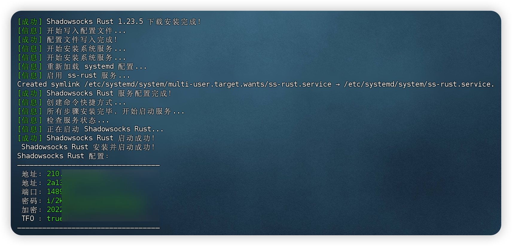 到此就完成SS2022的安装,需记录端口,后面配置IX转发时需要用到