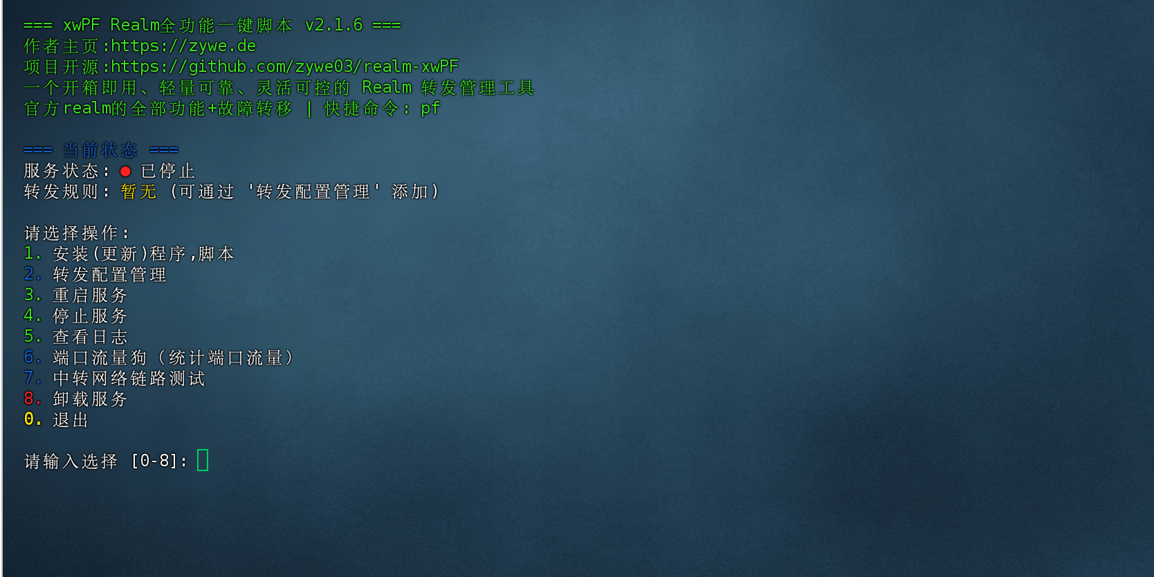 wget -qO- https://ghfast.top/https://raw.githubusercontent.com/zywe03/realm-xwPF/main/xwPF.sh | sudo bash -s install